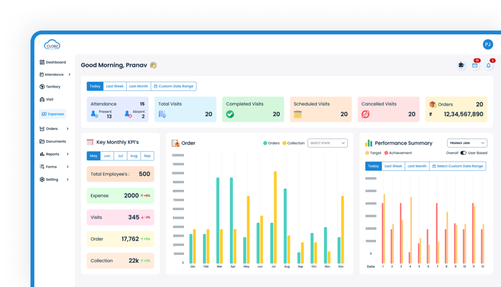 Clobz is a Sales Force Automation (SFA) application designed for companies with field-based teams—such as FMCG, Pharmaceuticals, and Manufacturing. It helps managers track field visits, attendance, orders, and expenses in real-time.